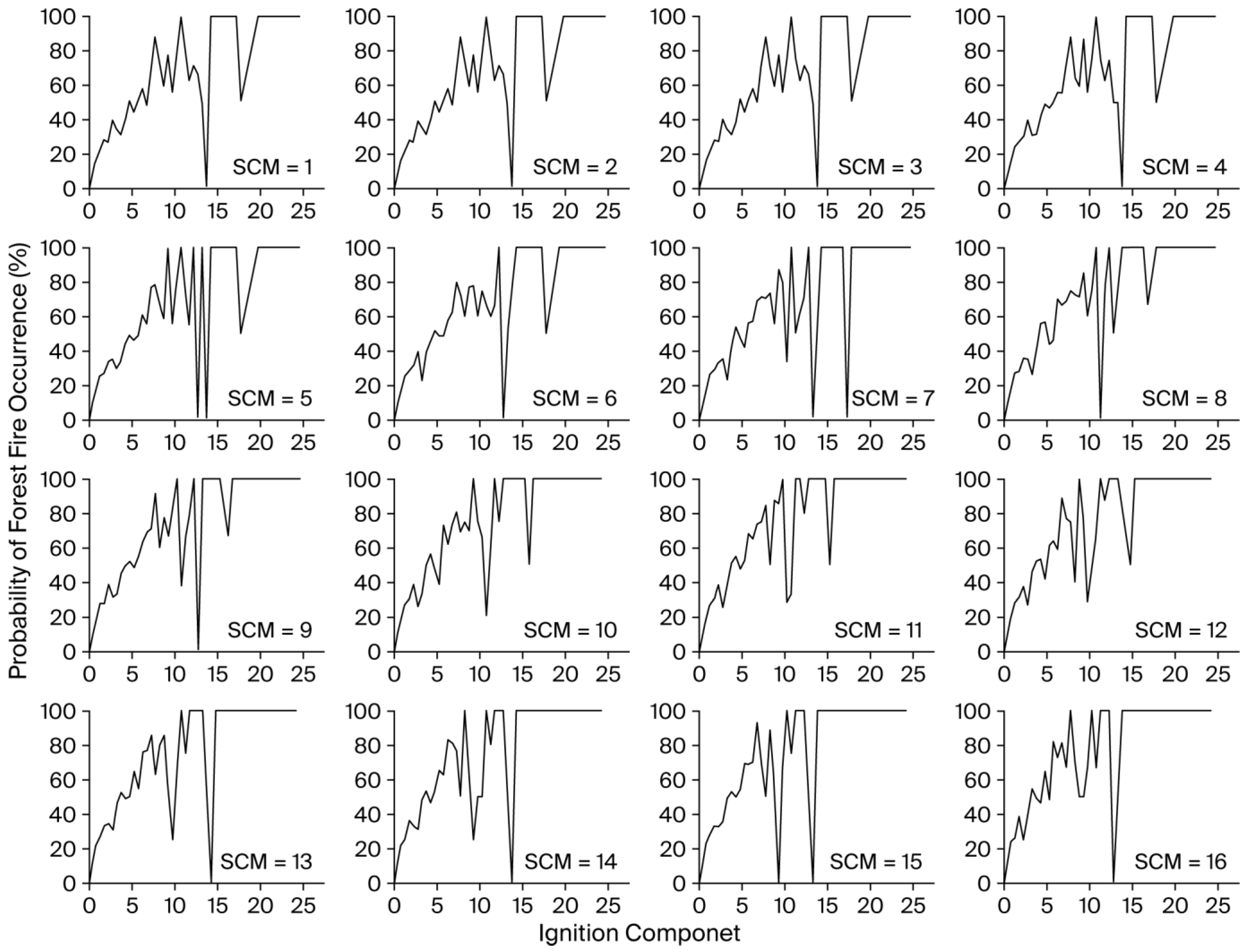 This study demonstrates that SCm exerts no significant effect on the variation in the forest fire occurrence probability with the IC, aligning with the findings of Sun and Zhang [