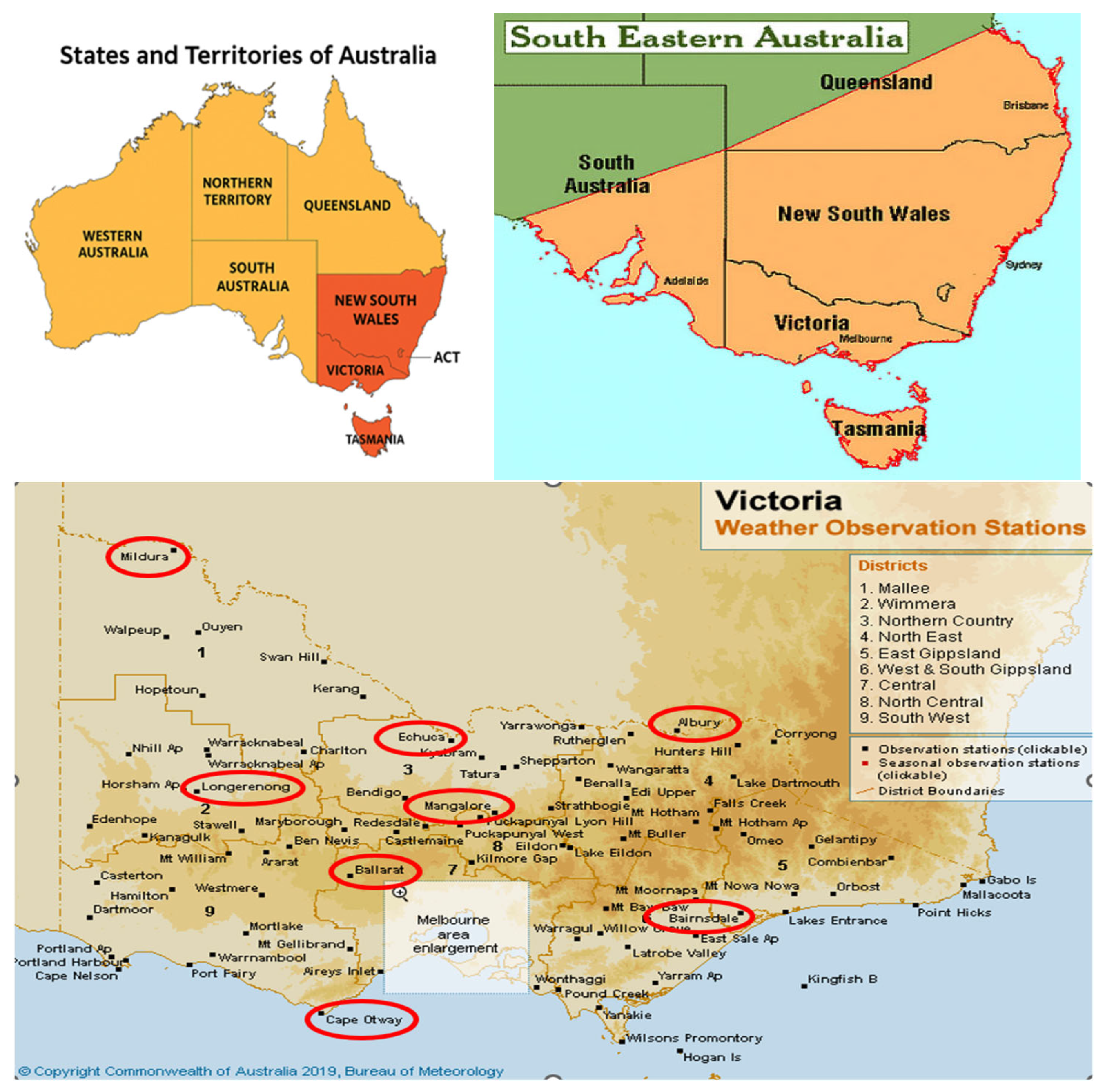 Table 2. These stations were chosen based on the availability of historical meteorological data and to ensure geographic representativeness, covering various districts across the state. By including stations from inland, coastal, and transitional zones, this research aims to capture the diverse climatic conditions that influence fire weather patterns across Victoria. The selection of these stations underscores an effort to represent the entire state and provides insights into the spatial dynamics of bushfire risk.