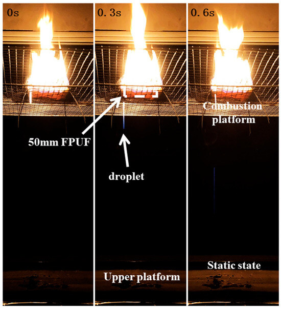 Flexible polyurethane foam (FPUF) and other polymer materials are widely used in ship cabins as furniture fillers and for other purposes. However, these materials are highly flammable and pose considerable fire risks. In particular, thermoplastic and thermosetting materials will undergo melting, flowing, and dripping during combustion [1,2,3,4]. Existing studies have shown that dripping may remove combustibles and heat, thereby retarding the combustion of the material itself or even leading to self extinguishment [5,6]. However, it is more common that molten drips carrying flames fall and ignite pool fires or act as “secondary ignition sources” for the underlying combustibles, expanding the fire spread [7,8,9,10]. Moreover, melt flow and dripping can alter the flame propagation path and form new fire spread patterns. Therefore, studying dripping behavior is essential for understanding the polymer combustion mechanism, improving flame retardancy, and optimizing the fire dynamic models.