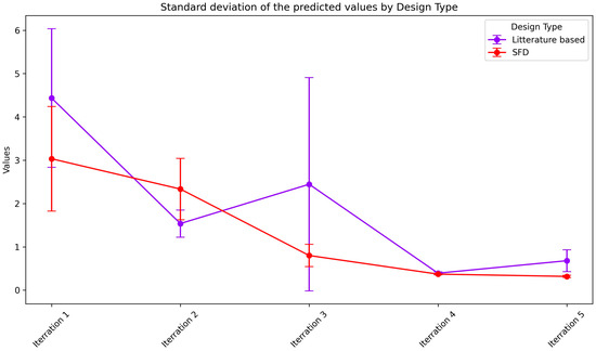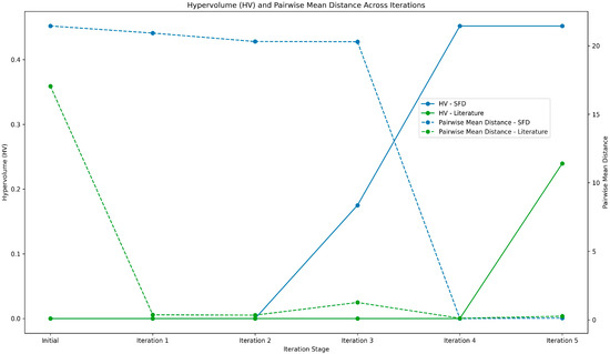 The SFD approach’s superior final performance (MAPE 4.6% vs. 5.8% for literature-based at iteration 5) despite initially higher error (10.8% vs. 12.3% at iteration 0) exemplifies the exploration–exploitation trade-off. The SFD’s uniform space coverage enables more accurate uncertainty quantification across the design space, leading to more informative acquisition function evaluations. The crossover occurs at iteration 3, where the accumulated benefits of systematic exploration manifest as improved prediction accuracy in both interpolation and extrapolation regions. This demonstrates that initial model performance in familiar regions (literature-based strength) is less valuable than global space understanding for identifying optimal formulations in under-explored regions.