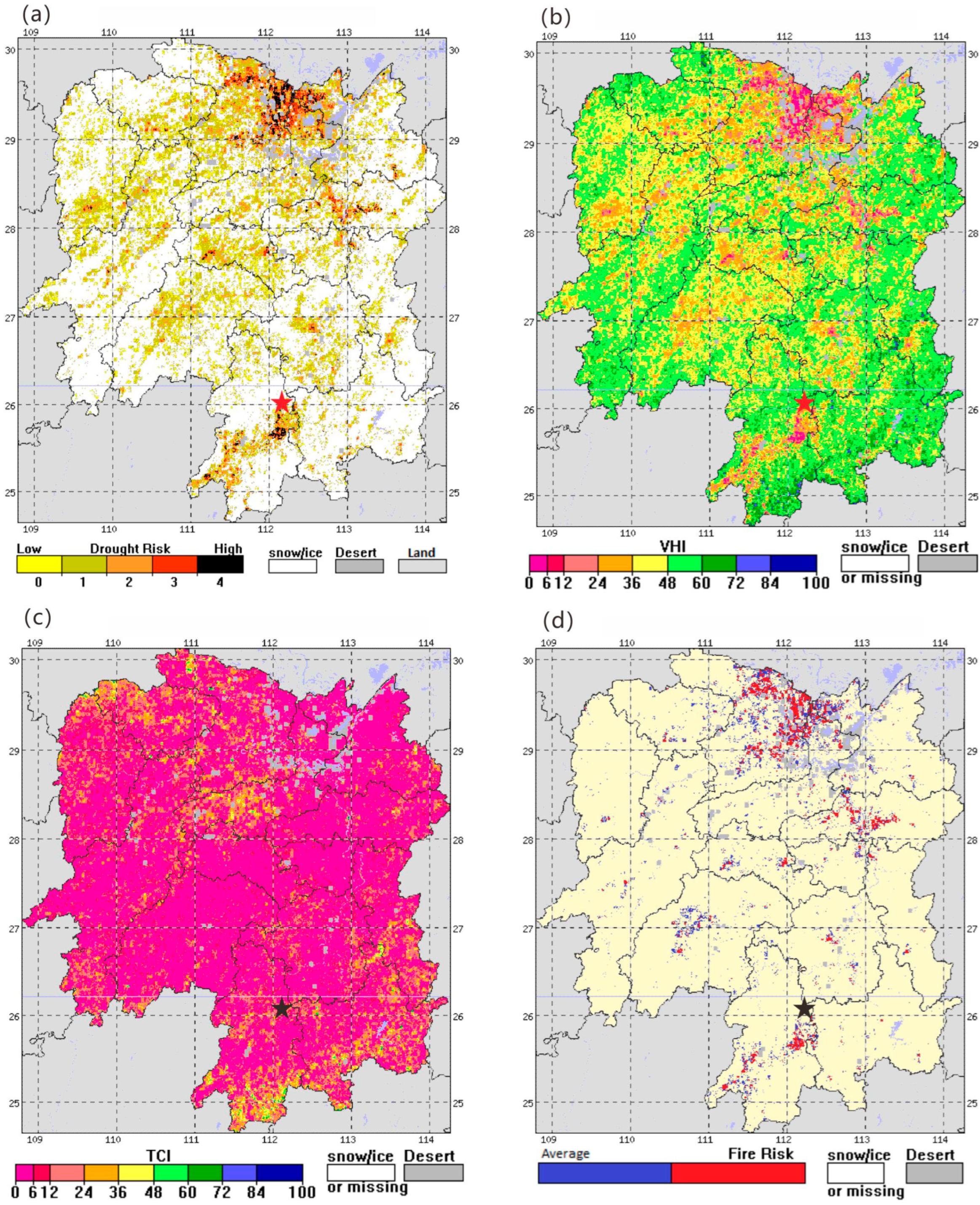 - Yang, Y.; Tang, J.; Chen, H.; Huang, J.; Chen, L.; Wang, X.; Wang, Q.; Zhao, E. Analysis of Meteorological Conditions of Forest Fires in Hunan Under the Background of Extreme Drought in 2022: A Case Study of the “10.17” Major Forest Fire in Xintian. J. Catastrophology 2024, 39, 113–118. [Google Scholar]