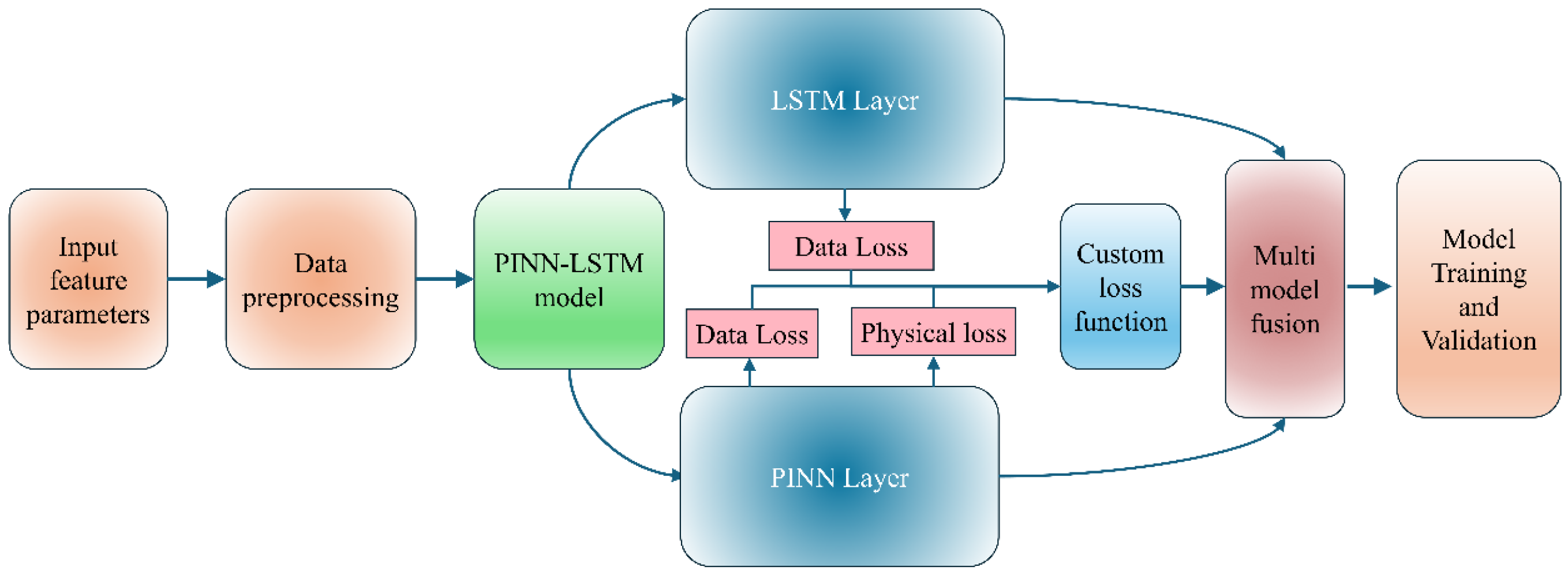 35]. The Physics-Informed Neural Network–Long Short-Term Memory (PINN-LSTM) integrates physics-based constraints with deep sequence modeling to close this gap, enforcing adherence to diffusion laws while improving predictive accuracy [