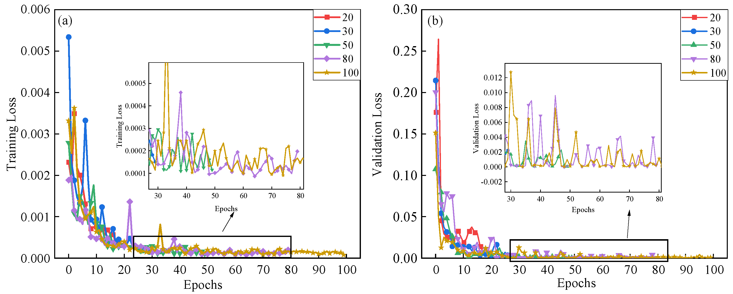 The Batch and Hidden dimension hyperparameters, however, exhibited optimal ranges of 96–128 and 32–64, respectively; values outside these ranges reduced model performance.