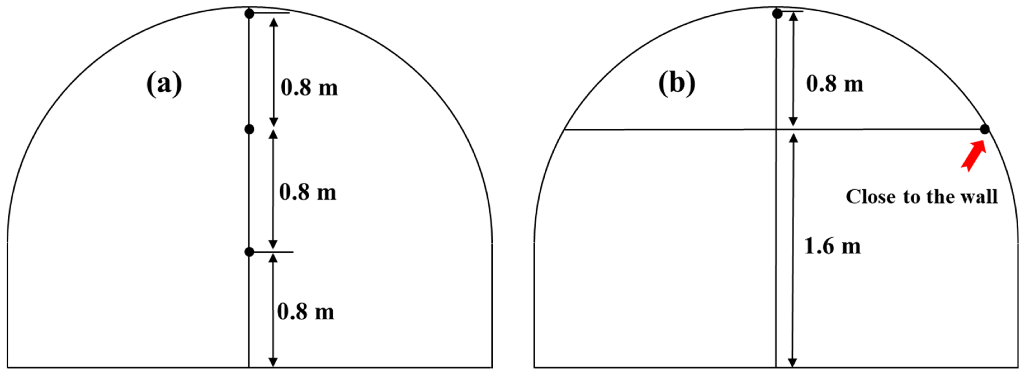 Figure 7 illustrates the three-dimensional model of the conveyor roadway and the arrangement of monitoring points near the roof.