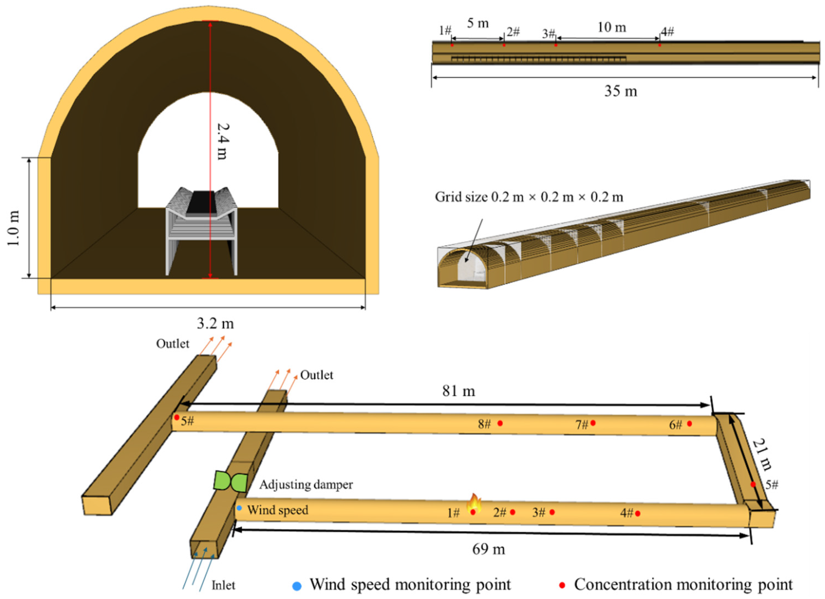 4]. Consequently, they are now widely adopted in coal mine production and transportation. The unique environment of underground coal mines, characterized by relatively low oxygen concentrations and complex ventilation conditions, poses significant fire risks. Once initiated, fires can spread rapidly and are difficult to control, often leading to severe economic losses and casualties [