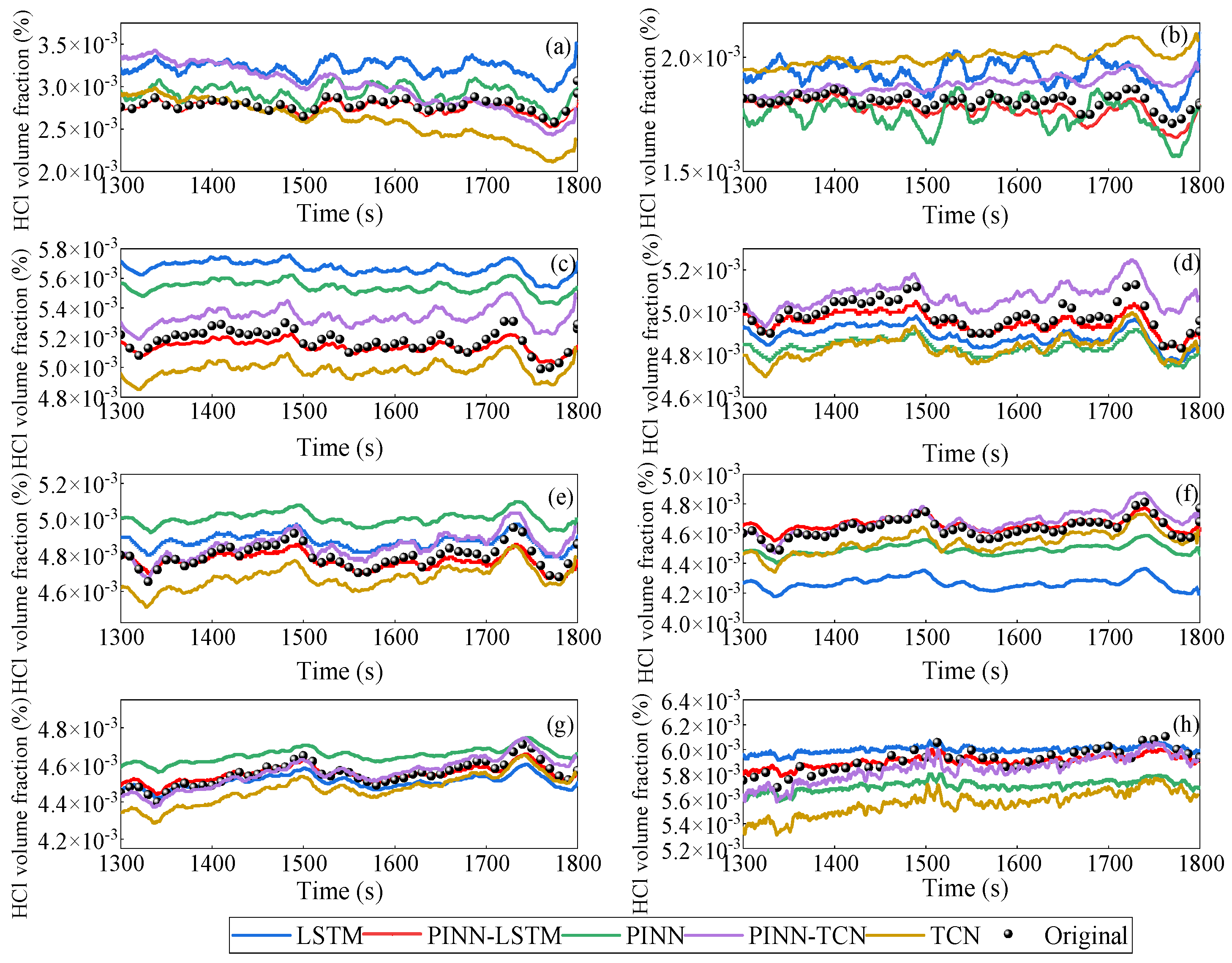 We explain the experimental results by comparing the PINN-LSTM model with three other prediction models.