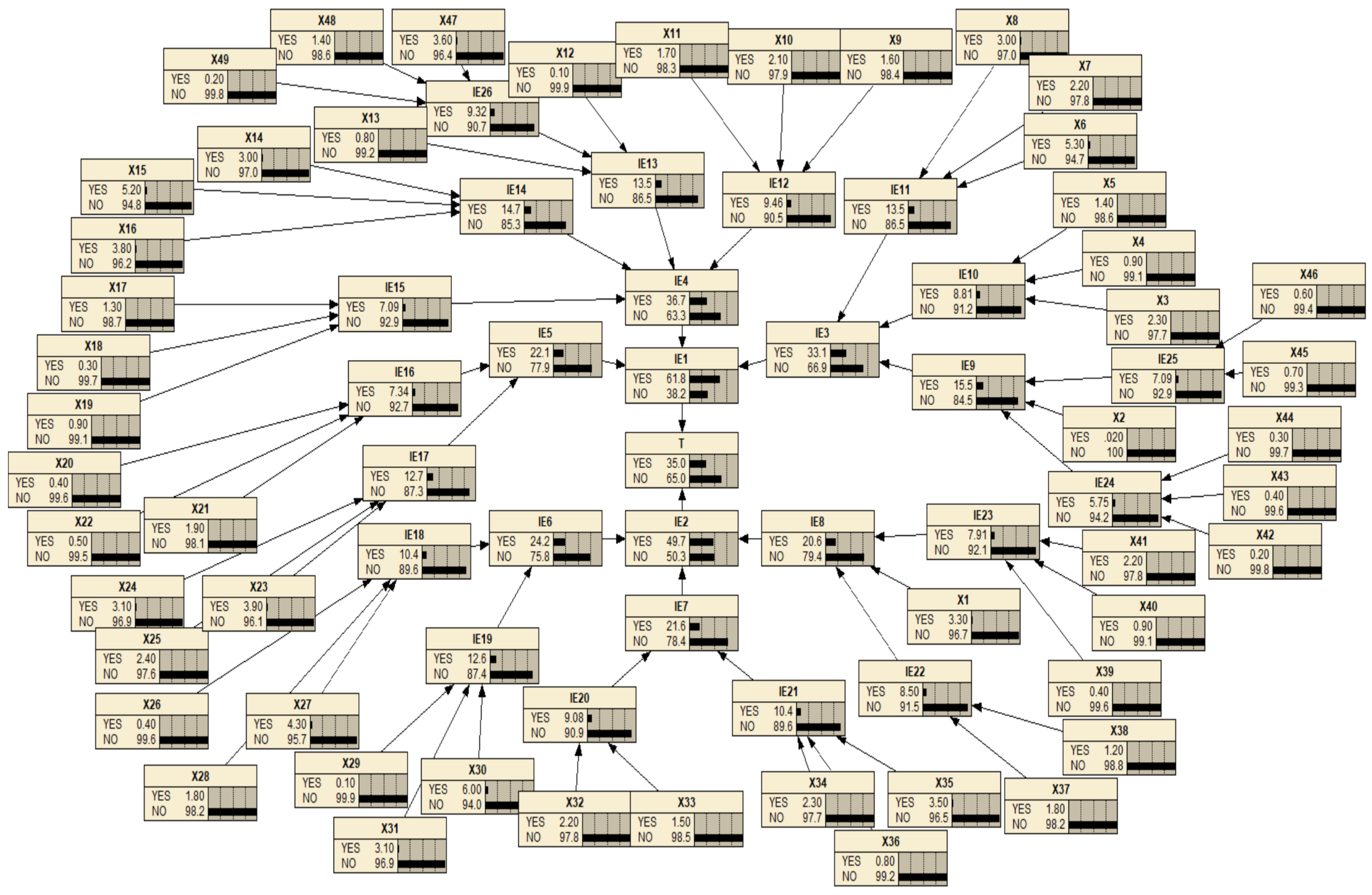 A specific root node was assumed to have occurred, with its occurrence probability set to 100%. Using this as the analytical starting point, the conditional probabilities of the corresponding next level were clarified.