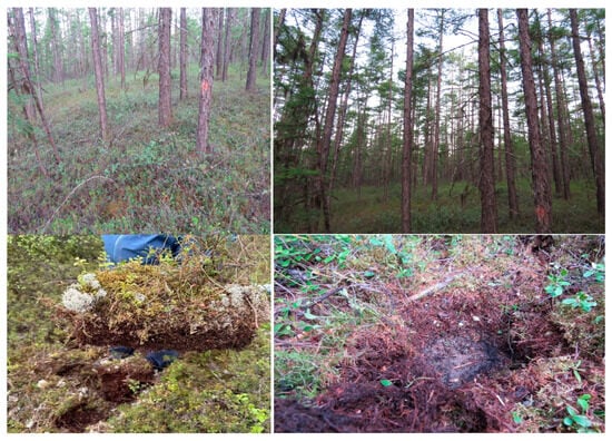 Collection of sub-surface humus in Ledum palustre-Larix gmelinii forests.