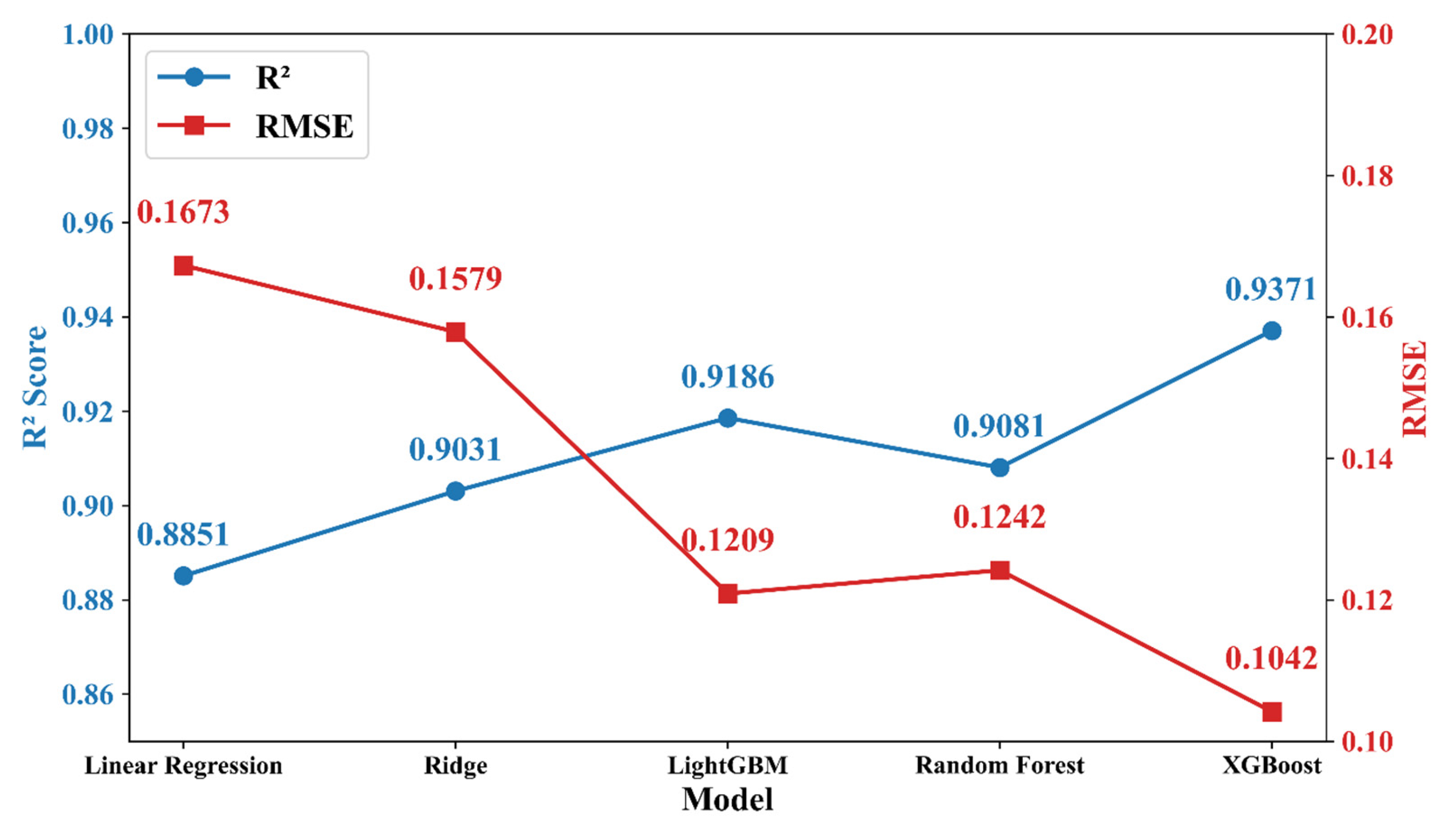 XGBoost is an efficient gradient boosting decision tree (GBDT) optimization algorithm that incorporates second-order gradient information and regularization terms to enhance model generalization and computational efficiency [29,30].