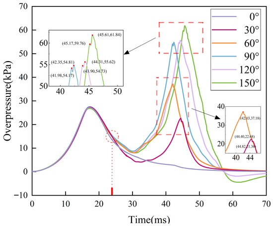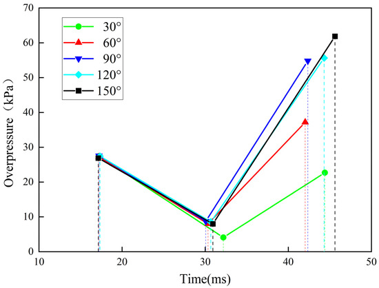 Simulation results of explosion overpressure comparison of elbows at different angles.