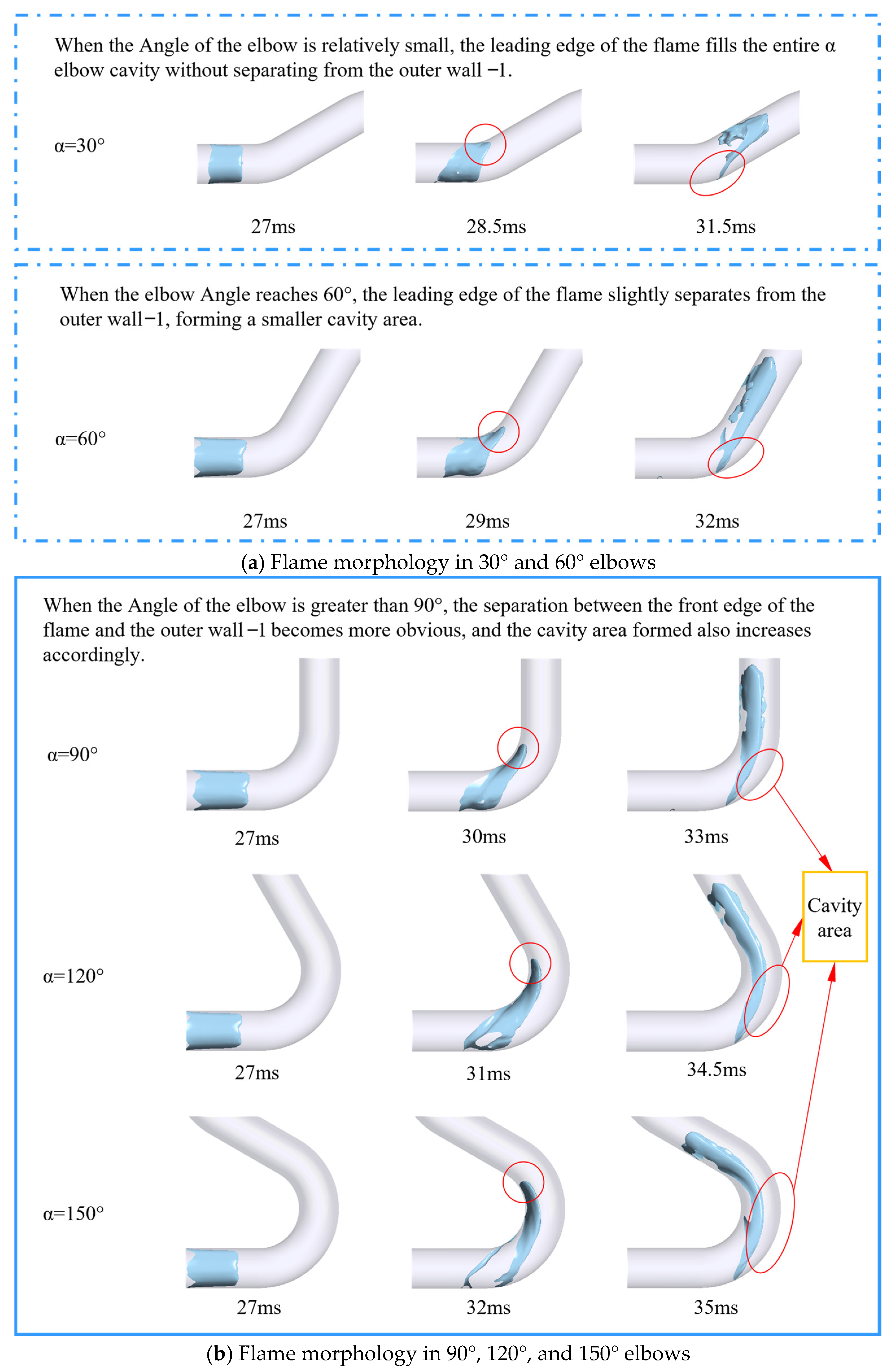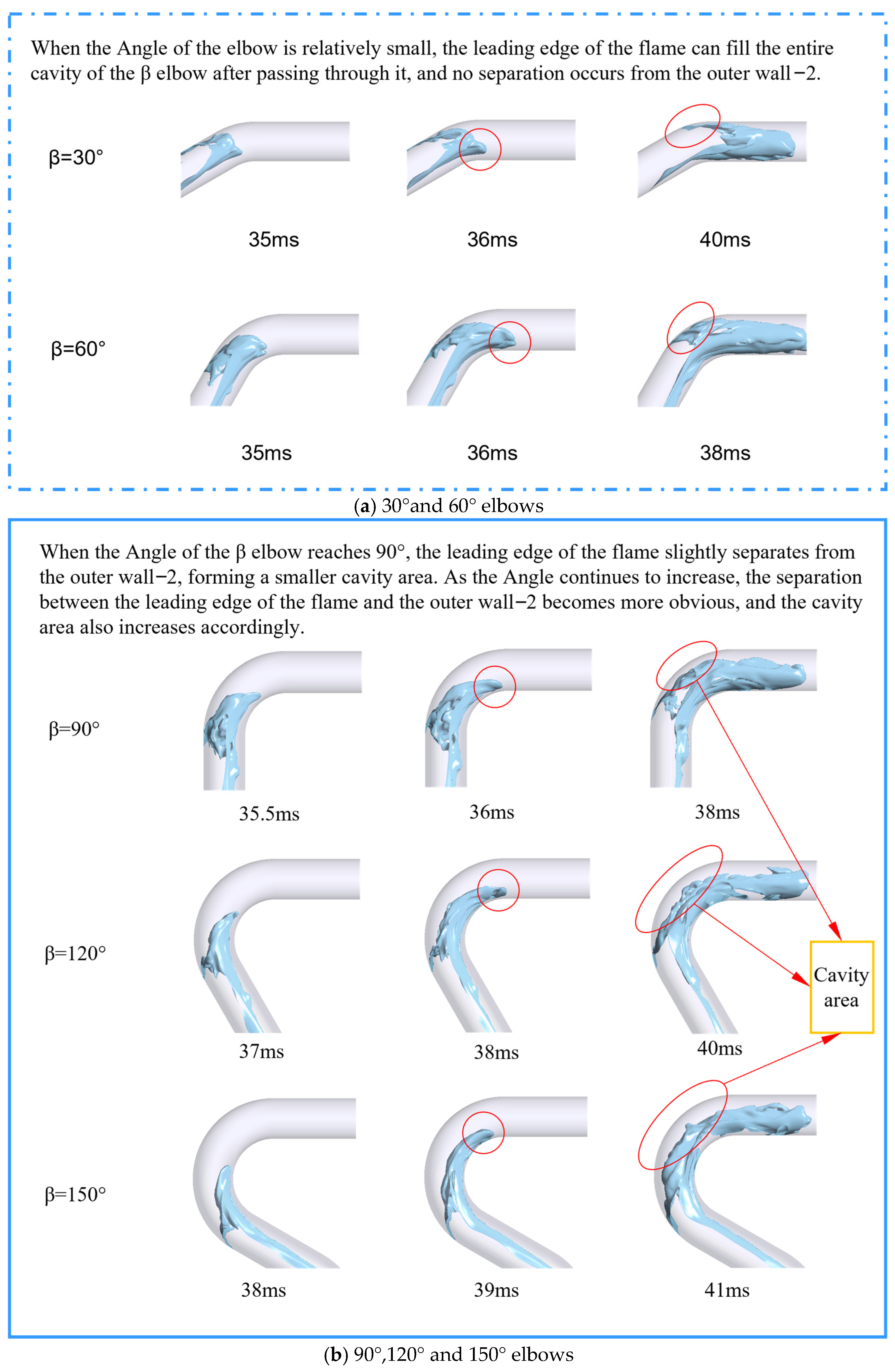 4.2. Patterns of Flame Propagation Within Curved Pipes