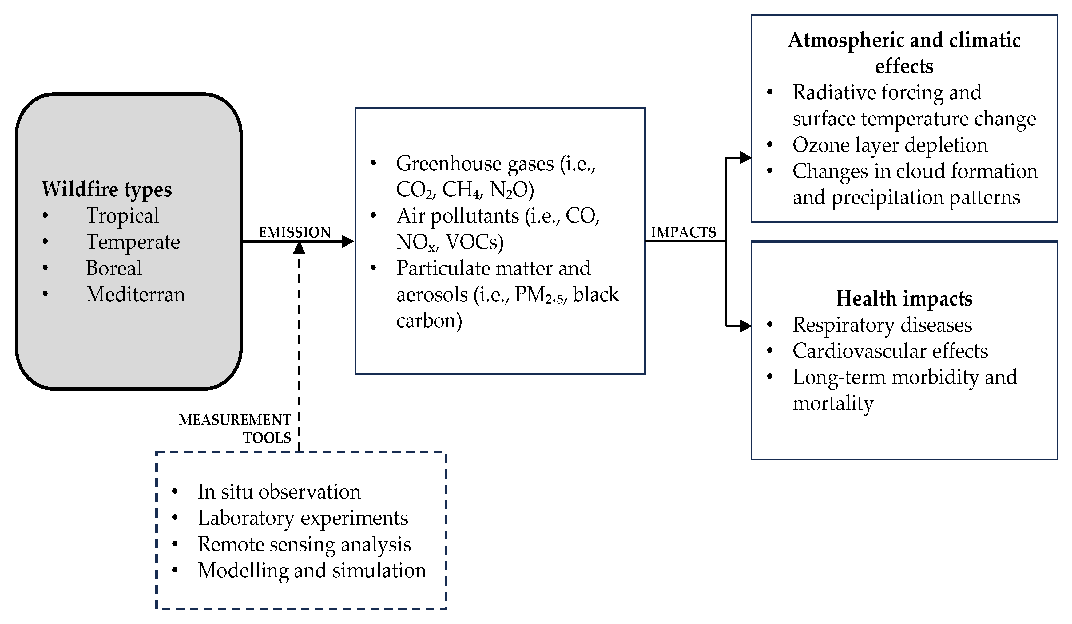 - Interdisciplinary frameworks linking atmospheric science, ecology, and epidemiology are essential to refine emission modeling, strengthen climate projections, and guide evidence-based mitigation and adaptation policies. Moreover, this review advances scientific understanding of the coupled nature of combustion efficiency, emission variability, and climate feedback, while providing a foundation for more reliable global emission inventories and informed policy interventions in fire-prone ecosystems.