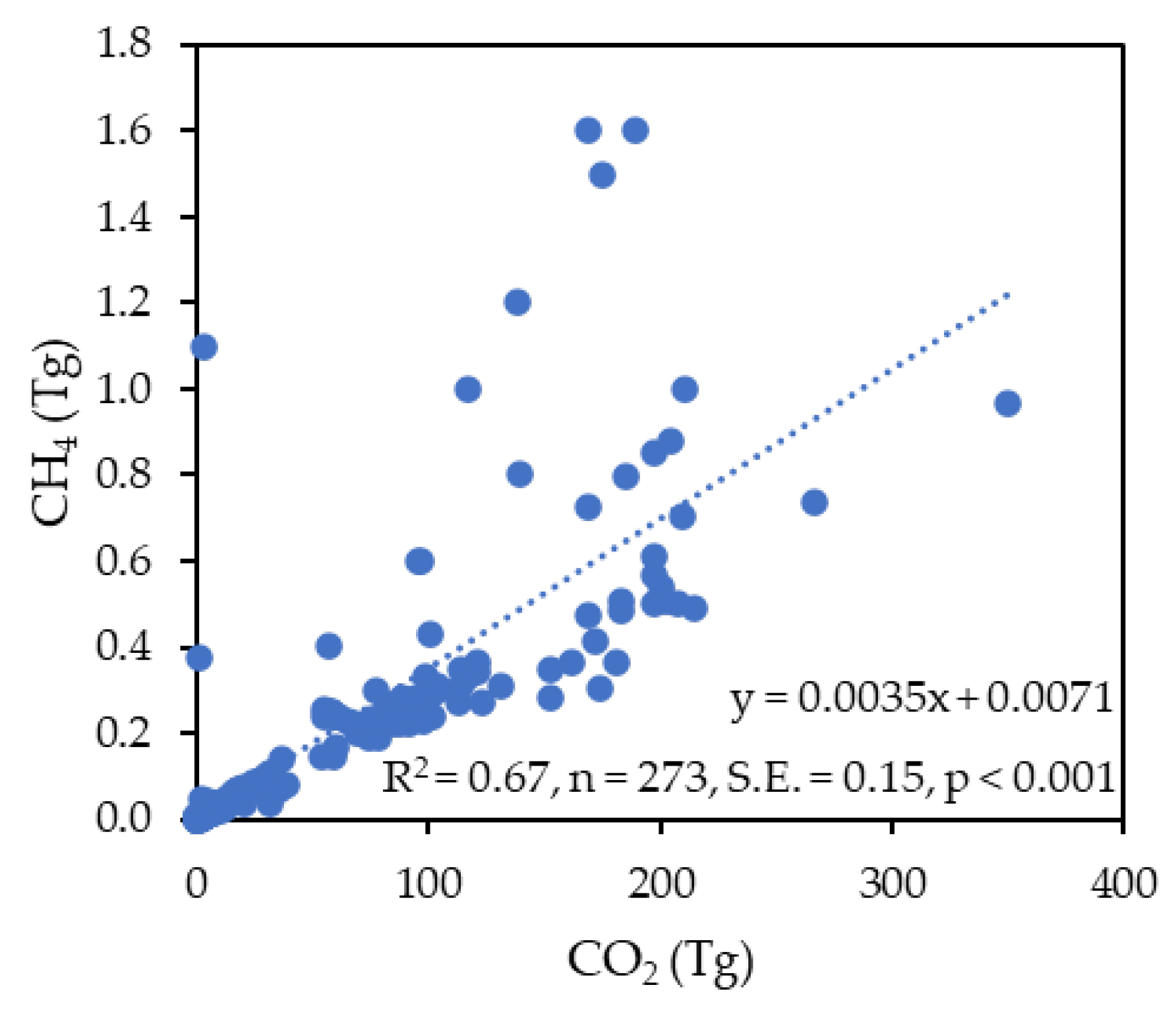 | Region | Location | References | CO2 (Tg) | CH4 (Tg) | NOx (Tg) | CO (Tg) | PM2.5 (Tg) | PM10 (Tg) |