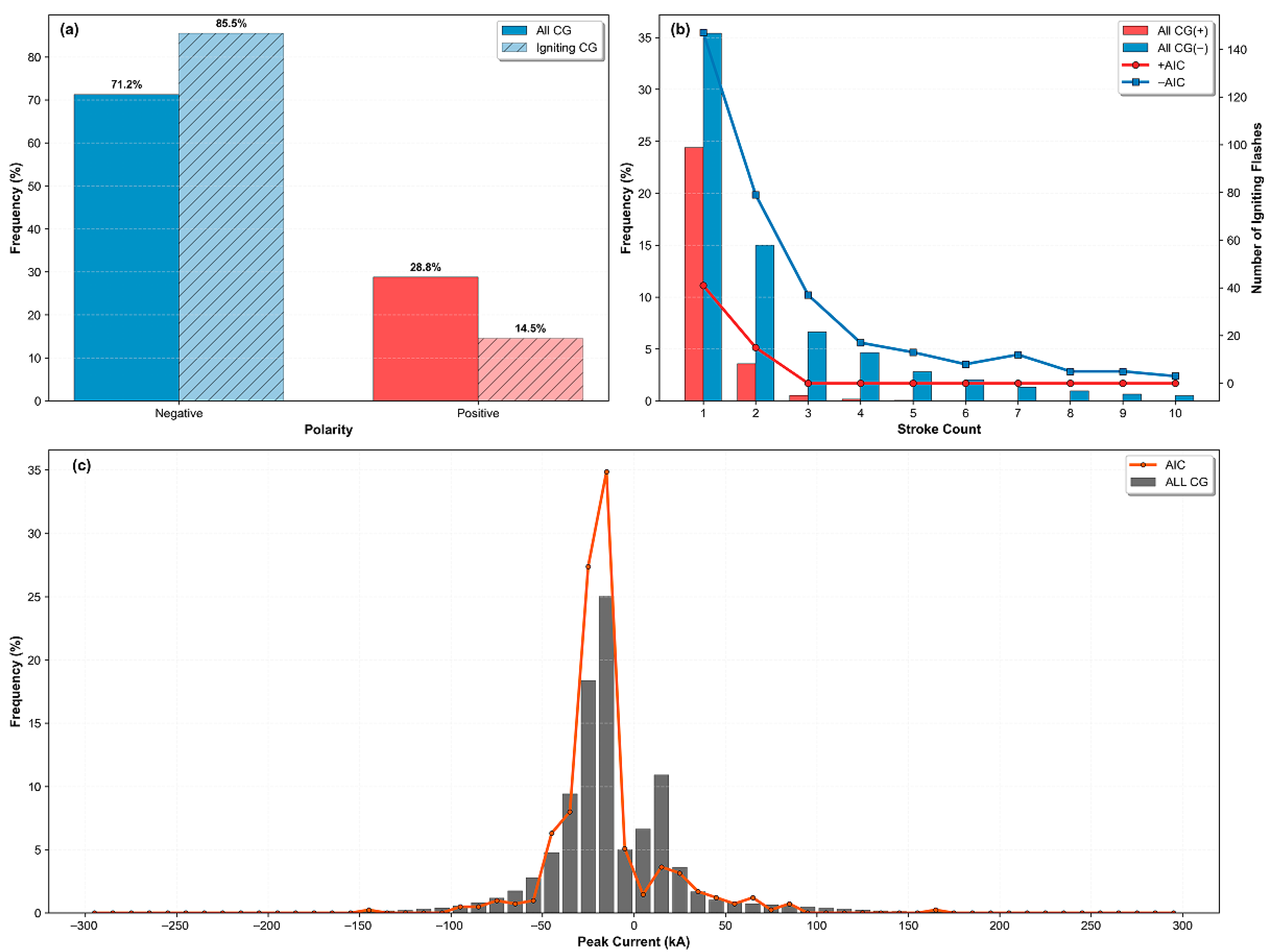 3.4. Peak Current and Multiplicity of Wildfire-Igniting Lightning Flashes