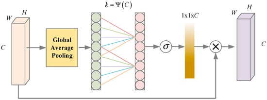 The channel attention mechanism is a type of attention mechanism, with SENet being the most representative example. It primarily extracts features through feature aggregation and recalibration. While this approach achieves high accuracy, it also entails high complexity and computational burden due to the dimension reduction method employed by SENet to control model complexity. However, dimensionality reduction negatively impacts channel attention prediction efficiency and acquisition speed. ECA can effectively address this issue, and its structure is illustrated in Figure 4.