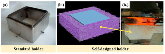 (a) Standard sample holder and self−made sample holder: (b1) Simulation and (b2) object.