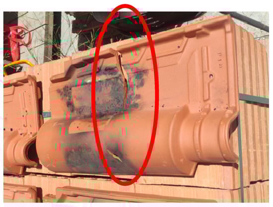 Ceramic tiles are widely used for their availability, affordability, and A2 fire reaction classification, as they do not produce flames or smoke under fire conditions. This particular solution has been promoted in the scientific community as a good solution to use in new dwellings in order to prevent roof ignition due to firebrand wind deposition [,]. In the case of ceramic roof tiles, in new dwellings, it is believed that their possible ignition may be due to combustible debris piling up and poor maintenance during its life time [].