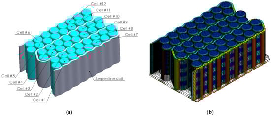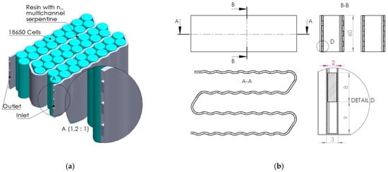 The present article’s authors’ research was directed towards the creation and application of an epoxy composite resin containing boron-based nanomaterials in a BTMS design (cooling serpentine). This ceramic filler has excellent applicability in components surrounding electronic components and, therefore, also in BTMSs, especially due to its high thermal conductivity and electrical insulation properties [