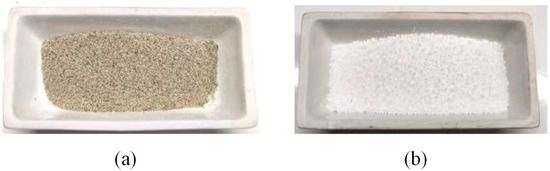 Prior to the experiment, the water hyacinth and PP plastic (Maoming Petrochemical Company, Maoming, China) were first dried in the oven at 120 °C for 24 h and then crushed for storage. The prepared fuel samples for the test are shown in Figure 1, and the elemental analysis results are shown in Table 1. The iron ore oxygen carrier mainly contained Fe2O3 (54.49%), SiO2 (27.31%), Al2O3 (3.69%), CaO (3.43%) and MgO (2.65%). It was crushed first and then calcined at a high temperature of 1000 °C in a muffle furnace for 6 h.