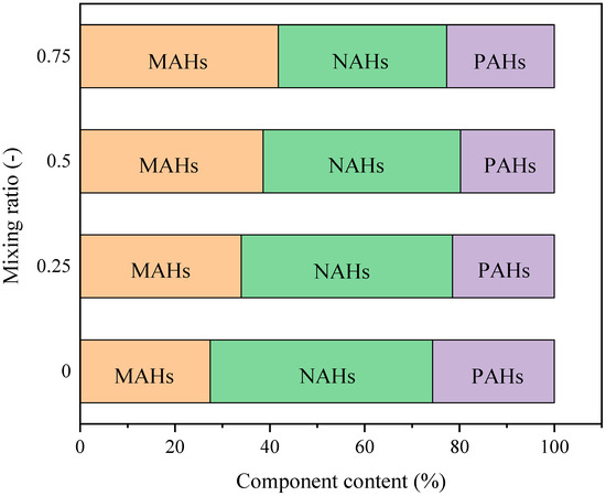 3.3.2. Variation in the Contents of Tar Components Under Different Blending Ratios