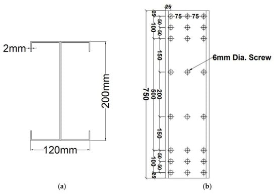 (a) Dimensions of section used for experimental analysis. (b) Screw arrangement used for connecting C-channels.