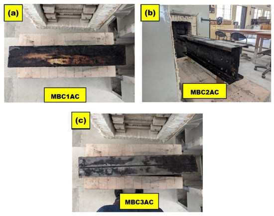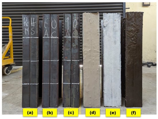 Each coating was mixed with an epoxy hardener for adhesion and durability and applied uniformly at a thickness of 10–15 mm. The coatings were carefully applied to the CFS specimens using standard procedures, ensuring uniform coverage across all exposed surfaces. Six specimens of each type were exposed to fire for 60 min, followed by cooling with air or water.