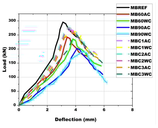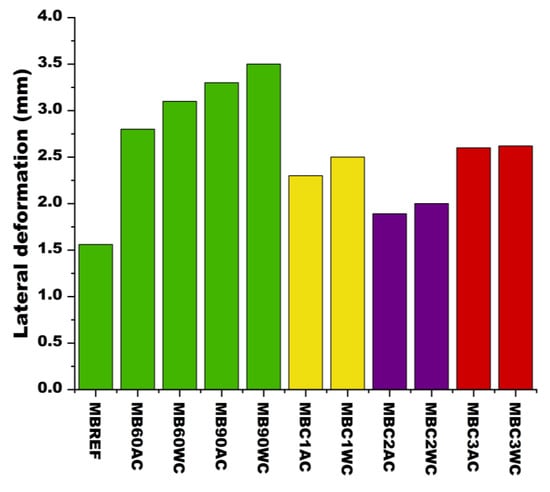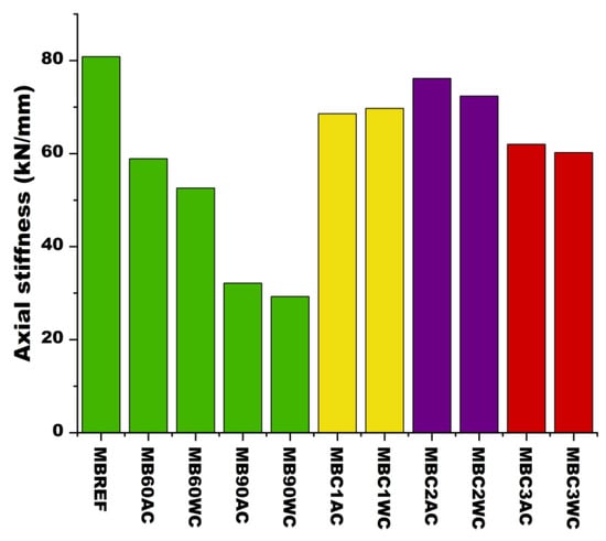 - Uncoated specimens MB60AC and MB90AC showed stiffness reductions of 27.1% and 60.2% compared to MBREF, while water-cooled specimens (MB60WC and MB90WC) exhibited additional reductions of 10.7% and 9.0% compared to their air-cooled counterparts.