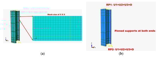 (a) Meshed FE model used for analysis, (b) FE model with boundary conditions.