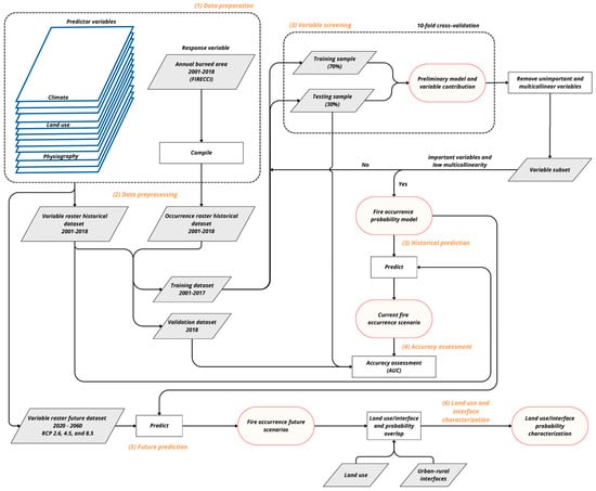 - Oliveira, S.; Oehler, F.; San-Miguel-Ayanz, J.; Camia, A.; Pereira, J.M. Modeling spatial patterns of fire occurrence in Mediterranean Europe using Multiple Regression and Random Forest. For. Ecol. Manag. 2012, 275, 117–129. [Google Scholar] [CrossRef]