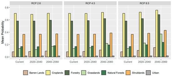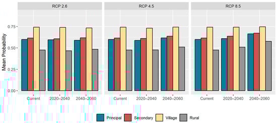 3.4. Future Spatial Distribution of Probability of Fire Occurrence