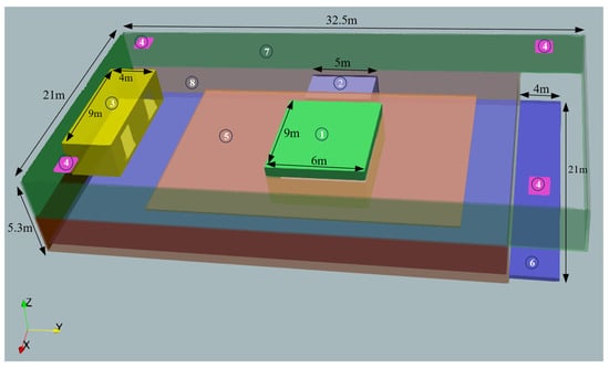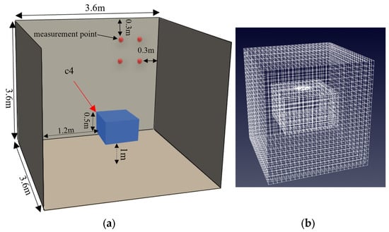 The selection of the BlastFOAM solver for this study was driven by its specialized capabilities in simulating explosive loads, particularly for scenarios involving energy equivalents such as TNT. Unlike ReactFOAM and XiFOAM, which are designed for detailed combustion and chemical reaction modeling, BlastFOAM allows for the direct input of explosive equivalents, enabling efficient calculations of shock wave propagation, energy release, and pressure field distribution without the computational overhead of complex chemical kinetics. This approach is particularly advantageous for large-scale simulations, such as those involving ship engine rooms, where computational efficiency is critical. By focusing on the energy release and propagation characteristics of explosive loads, BlastFOAM aligns with the study’s objectives while avoiding unnecessary complexity, making it an optimal choice for this research.