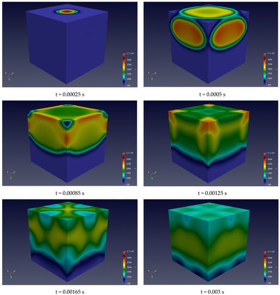 Figure 11 below show the temperature distribution at different times after the explosion as the explosion wave and reflected wave propagate. The wave is accompanied by high temperature.