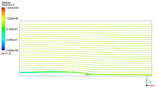 Streamline distribution around the fence with 38% porosity, subjected to a free-stream velocity of 1 m/s and an ambient air temperature of 35 °C.