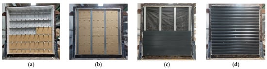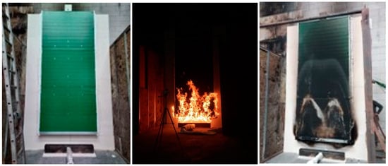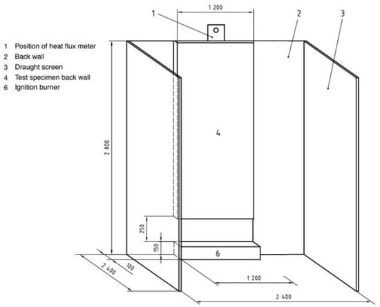 Figure 8). Samples consisted of single front wall systems (around 2 m wide × 3 m high), which were representative of a system used in practice and included the construction details of joints, fixings, lintel detail, etc., assembled as in practice. Samples were closed with non-combustible material in their sides to avoid any flame or extra oxygen entrance from those areas.