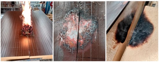 Figure 6). Internal incandescent combustion was not detected at the end of the test when the panels were fixed to a substructure and stitching screws were used each meter to simulate a much more real mounting condition (