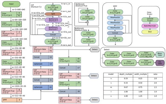 Building on the previous background, this paper chose YOLOv8 as the base model. Introduced by the Ultralytics group in 2023, YOLOv8 represents a state-of-the-art model for object detection, with its fundamental structure depicted in