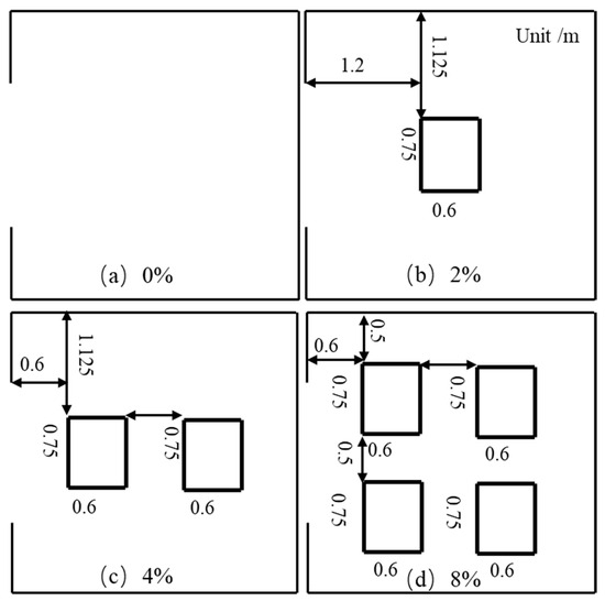 and are the coordinates in the and directions, respectively; is the area porosity in the direction; is the absolute pressure of the gas in Pa; and are the flow resistances due to grid obstacles and wall flows in N; is the ideal atmospheric density in kg/m3; is the gravitational acceleration in the direction in m/s2; is the stress tensor in N/m2.