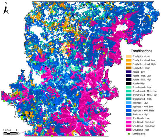 Although both cover maps maintained the same classification schema, the vegetative characteristics of the included communities varied profoundly between the two timeframes, and methodological challenges emerged accordingly. Pre-fire landscapes consisted of compositionally and structurally complex communities with high intraclass heterogeneity, varying stand densities, and frequent mixed stands of species like maritime pine (Pinus pinaster) and eucalyptus (Eucalyptus sp.), which were difficult to differentiate.