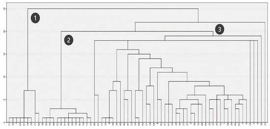 Figure 6), the clustering created various subsets demonstrating the lack of common features. The two main groups (