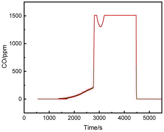 During the test, a CW1310-07A composite gas detector produced by YantaiChungway New Energy Technology Co., Ltd. (Yantai City, China) was used to monitor VOC and CO concentration signals during the test. The CO measurement range is 0–1000 ppm with an accuracy of 1 × 10−6 ppm, while the VOC measurement range is 1–1000 ppm with an accuracy of 1 × 10−6 ppm.