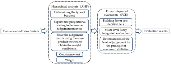 The AHP-FCE risk assessment model is constructed by integrating the analytic hierarchy process (AHP) and fuzzy comprehensive evaluation (FCE) method. The technical roadmap of this model is shown in Figure 1.