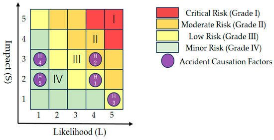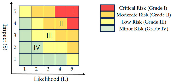 The risk matrix method categorizes risk levels into four grades, from high to low, as shown in Figure 3.