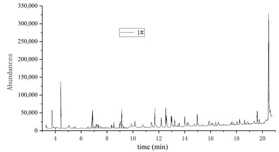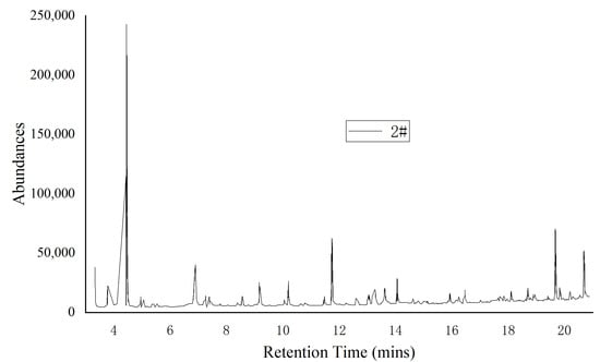 For a further explanation of this phenomenon, the components of two samples are analyzed by GC-MC. The results are shown in Figure 4 and Figure 5. Table 3 presents the component analysis.