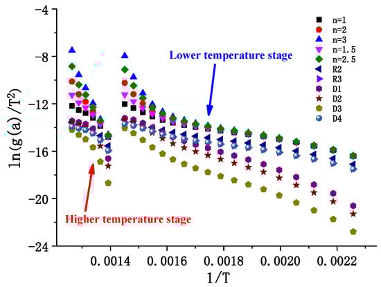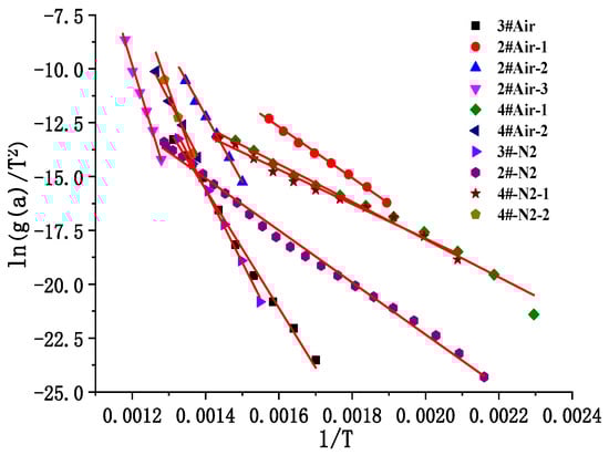 In the formula, , for the correct g(α) form, the graph of with respect to should be a straight line with a slope of and the intercept containing the frequency factor .