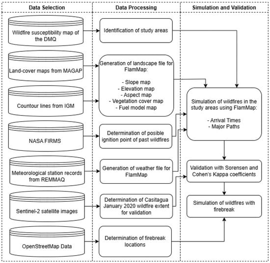 Mollocana-Lara JG, Obando-Proaño KJ, Córdova-Luspa BG. Wildfire Mitigation and Evaluation of Firebreaks Through FlamMap Simulations in High-Susceptibility Areas of the Metropolitan District of Quito. Fire. 2025; 8(5):189. https://doi.org/10.3390/fire8050189