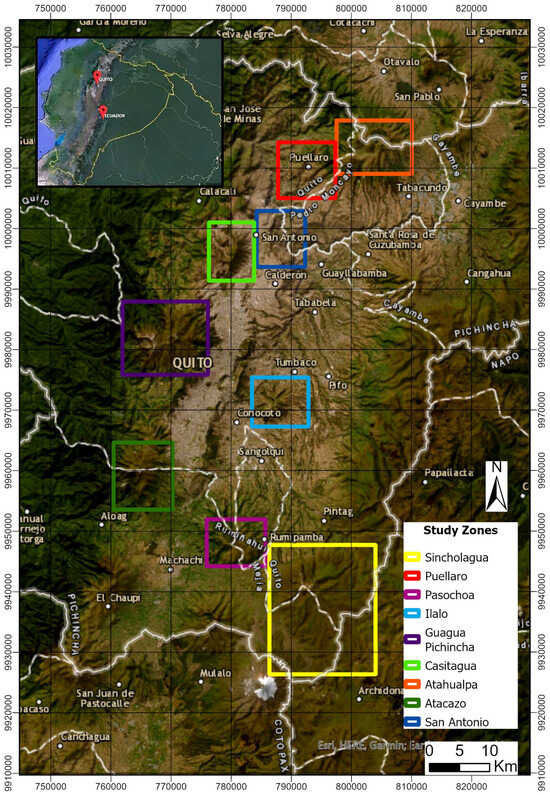 - Security Secretariat of the Metropolitan District of Quito. Natural Hazards Atlas of the Metropolitan District of Quito; Municipality of the Metropolitan District of Quito: Quito, Ecuador, 2020. [Google Scholar]