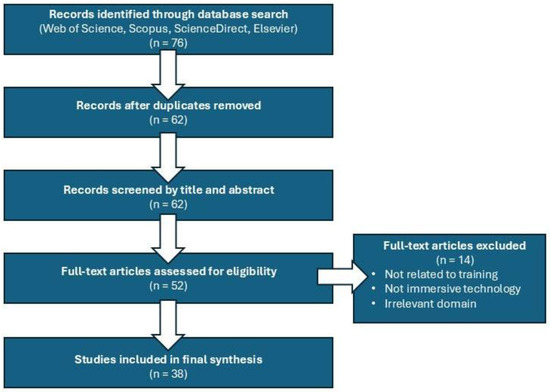 These criteria are consistent with those used in previous reviews examining immersive training in emergency services, safety education, and simulation research [4,5,10,11,14].