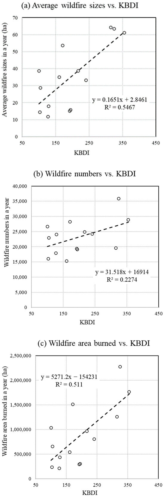 3.2. KBDI vs. Annual Wildfires in the Great Plains