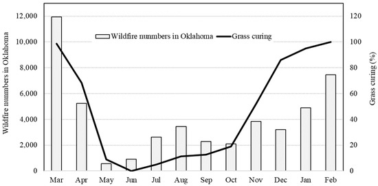 Wildfire numbers and grass curing in Oklahoma.