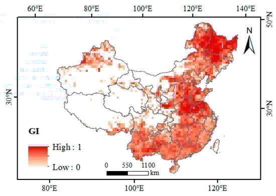 When acquiring the factors of the above-mentioned FR zoning, a single data source often fails to meet the demands of multidimensional analysis. Different data products have their own advantages in terms of spatial resolution, temporal coverage, and data type; thus, it is particularly important to conduct a comprehensive analysis by integrating multiple data sources. The method of combining point and area data can overcome the limitations of a single data source, offering a more accurate and comprehensive fire risk assessment. The Moderate Resolution Imaging Spectroradiometer (MODIS) data, known for its high spatial and temporal coverage capability, has been widely used in fire point monitoring and burn area estimation [,,]. Among them, the MCD64A1 has been extensively utilized in the extraction of fire data for the study area, particularly in large-scale fire area analysis and temporal variation studies [,]. Therefore it is especially suitable for evaluating annual average burned areas and providing high-quality spatial distribution information. The MODIS Collection 6 active fire data offer high timeliness and enhanced spatial coverage, making it well-suited for analyzing dynamic factors such as the annual average active fire density and fire frequency []. By integrating both datasets, a comprehensive reflection of the spatial distribution of fire occurrences can be achieved. This point-area integration approach to data fusion not only enhances the accuracy of fire monitoring but also contributes to a more comprehensive understanding of fire occurrence patterns, thereby providing more reliable support for fire risk assessment and management.